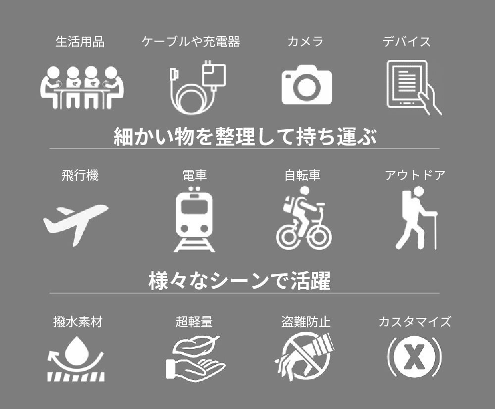【ガジェット収納/ウェストポーチ/ショルダーバッグ/旅行ポーチ/超軽量251g/撥水】