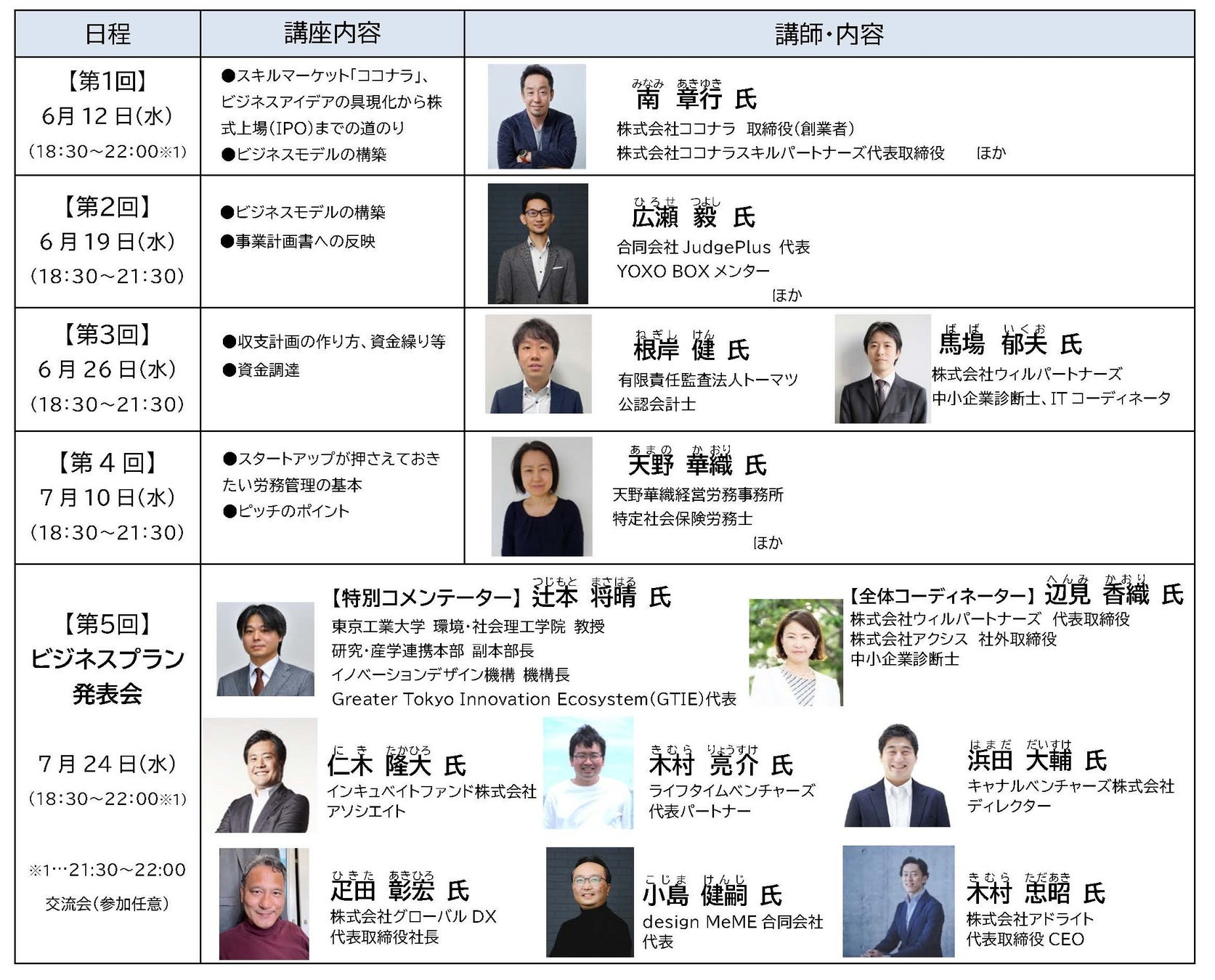 第1回講義では、株式会社ココナラ 取締役(創業者)南 章行氏をゲスト講師としてお迎えし、ビジネスアイデアの具現化から株式上場(IPO)までの道のりについてお話いただく等、豊富なプログラムを通じて新しいビジネスの創出を強力に支援します。