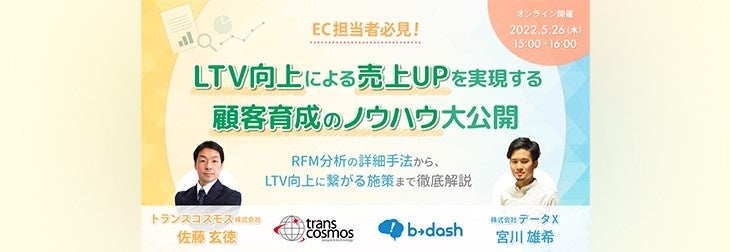 【トランスコスモスオンラインセミナー】EC担当者必見!LTV向上による売上UPを実現する顧客育成のノウハウ大公開を5/26(木)に開催