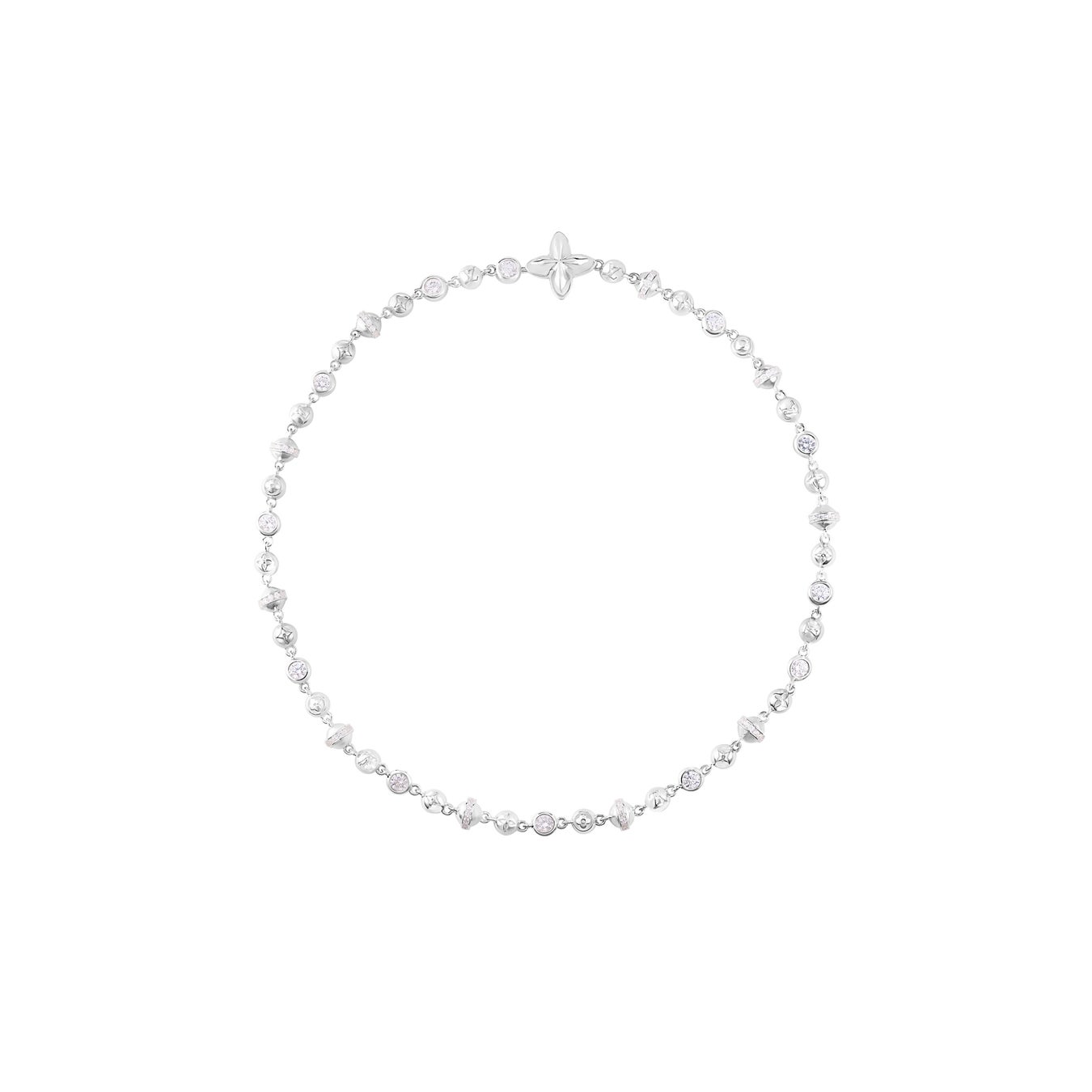 ダンディなイブニングルックを美しく引き立てる「ブレスレット·LV グローブ」。精緻に仕上げたシルバーカラーの球体を繊細なリンクでつなぎ、ジルコンのストラスとモノグラム·シグネチャーの刻印で飾りました。