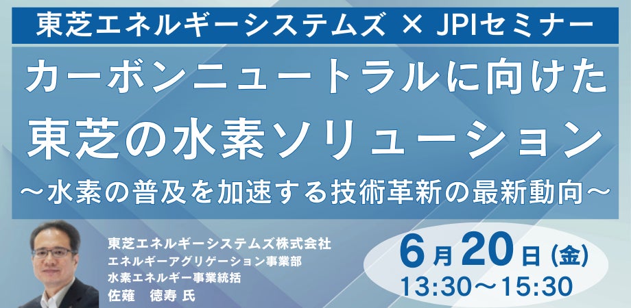 【JPIセミナー】「カーボンニュートラルに向けた東芝の水素ソリューション~水素の普及を加速する技術革新の最新動向~」6月20日(金)開催