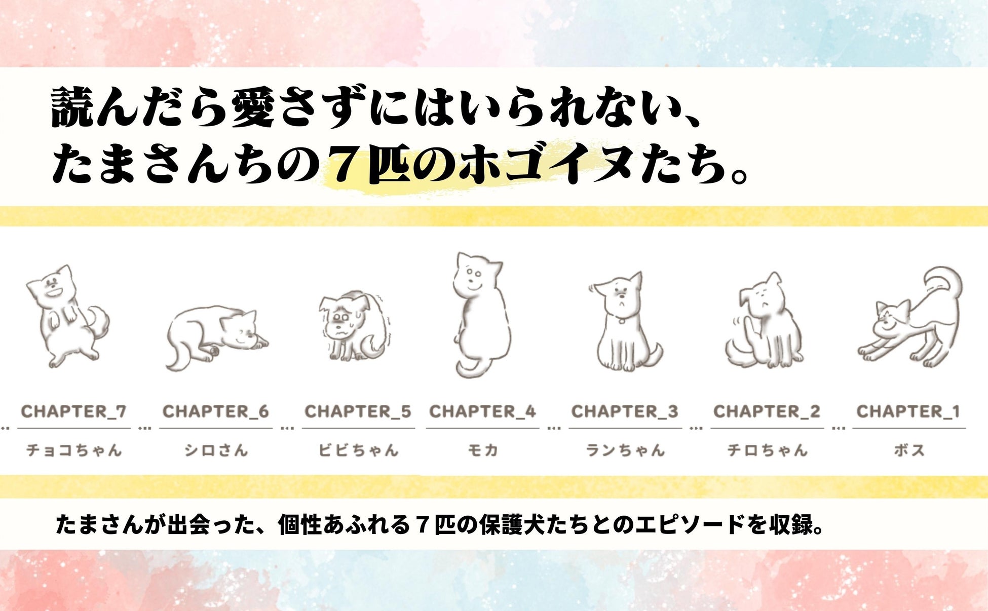 まずは知ってほしい。そんな思いから著者が厳選した7匹のホゴイヌたちとの忘れられないエピソードを、描きおろしのカラーイラストや実際の写真を交えて一冊にまとめた初めての書籍です。
