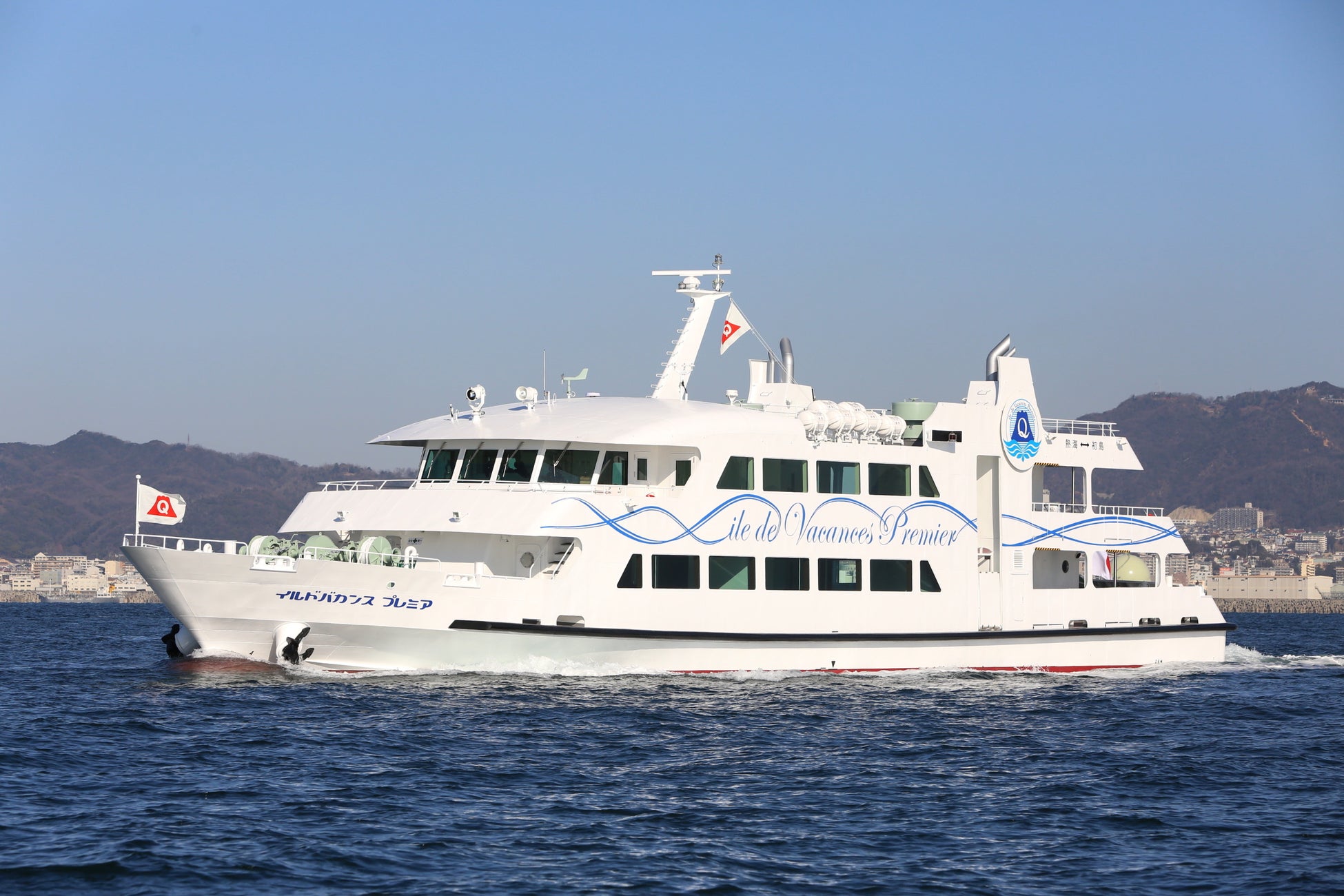 「イル ド バカンス」は、熱海港~初島港を結ぶ高速クルーズ船で、「イル ド バカンス プレミア」(定員605名)と「イル ド バカンス Ⅲ世号」(定員868名)の2隻が運航しています。展望デッキに出て360°広がる海や富士山を眺めたり、冬季はカモメにエサをあげることもできます。