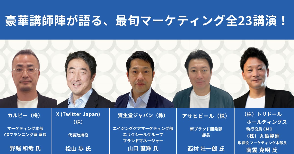 カルビー、資生堂、アサヒ、丸亀製麺、X(旧Twitter)など、有力企業のマーケティングを牽引する講師が連日登壇。