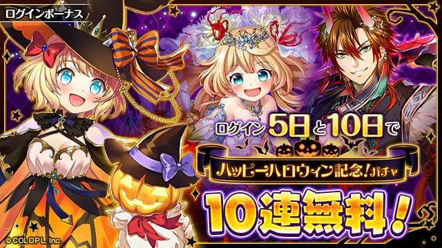 対象期間中、ログイン5日目と10日目に「ハッピーハロウィン記念!ガチャ」を追加で10連ずつ合計20連引くことが出来ます。