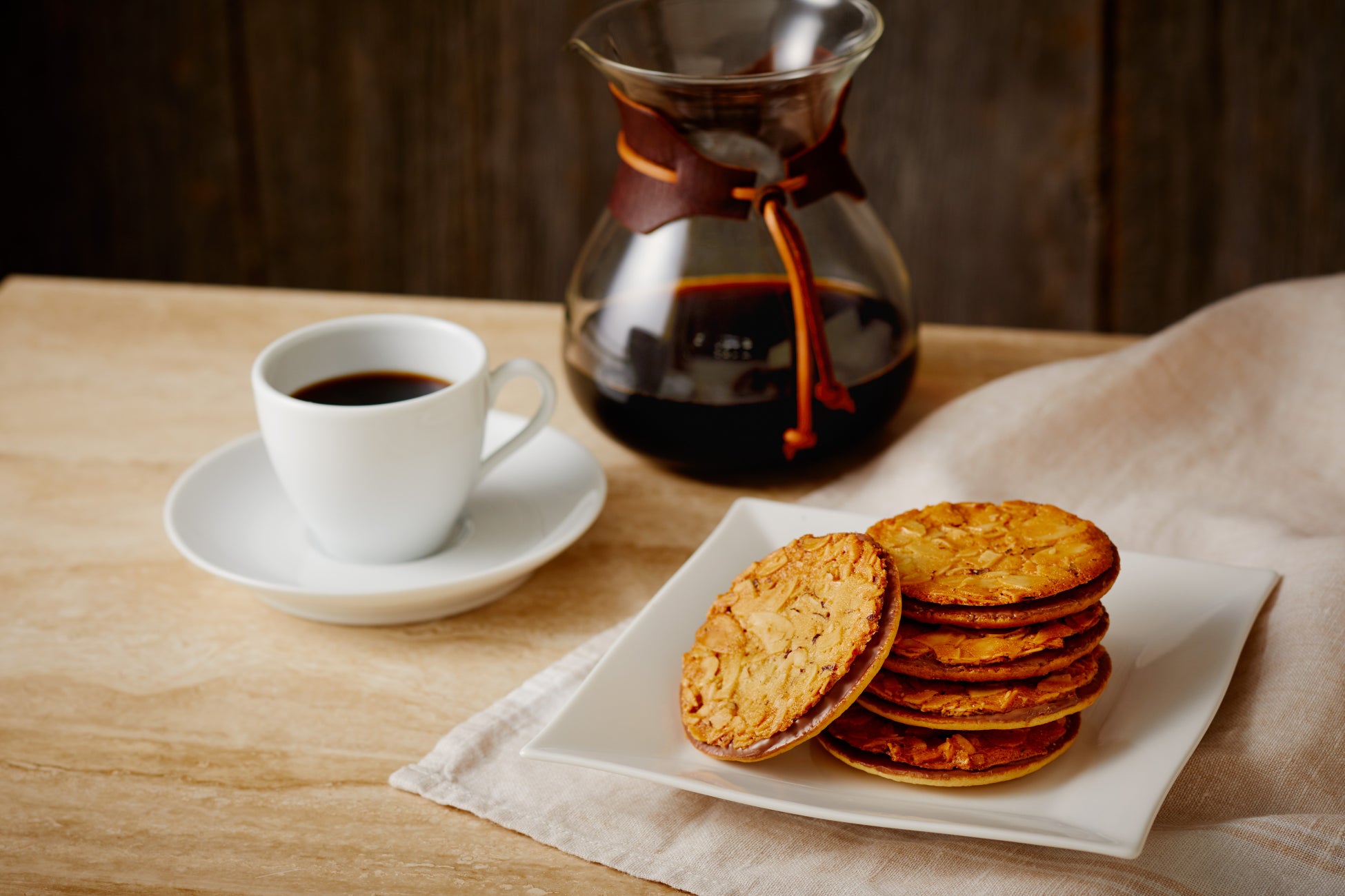 ヘーゼルナッツとアーモンドを使用した“パリッ”と“ザクザク”の2種類の食感異なるクッキーでミルククーベルチュールチョコレートをサンドしました。