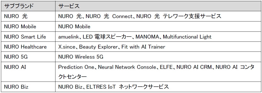 「NURO」では、7つのサブブランドを構成して多様なサービスを提供しています。
