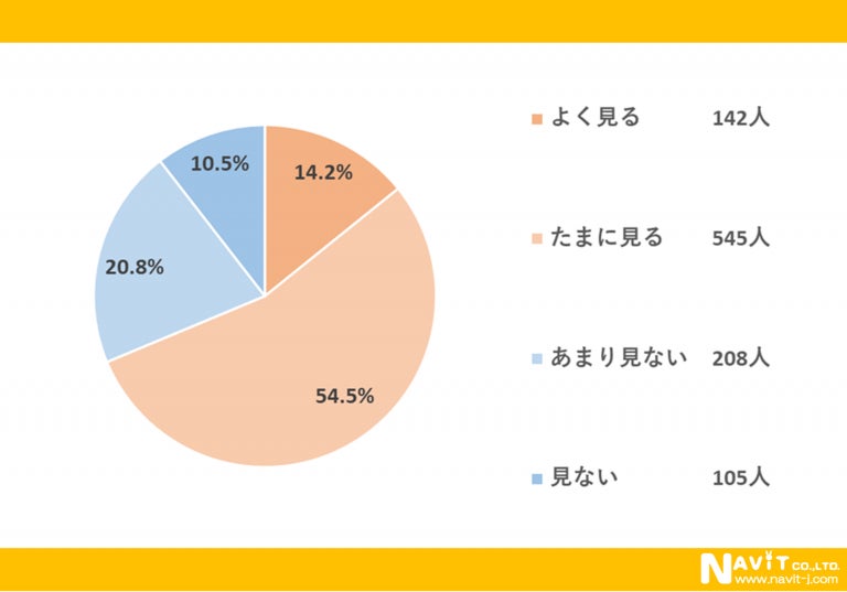 「日常的に口コミサイトを見ますか?」という質問については、「よく見る」が14.2%、「たまに見る」が54.5%という結果になり、合わせると69.7%のが口コミサイトを見ていることが分かりました。