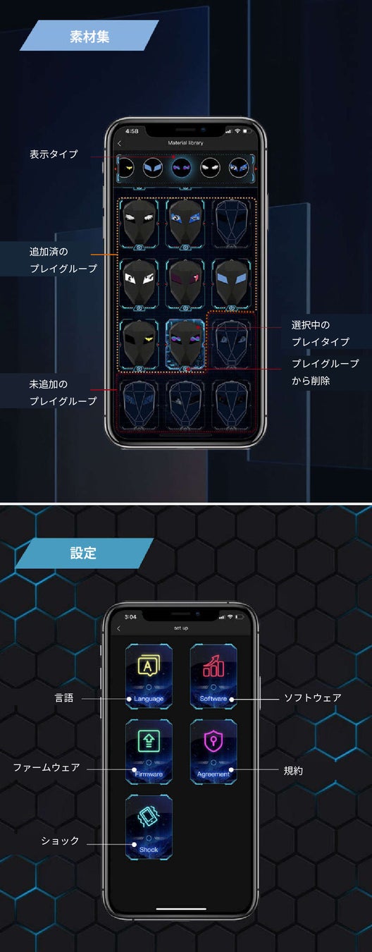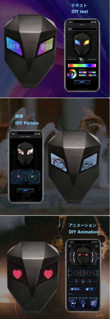 ●ふたつの目に色やテキスト、画像などをアプリ設定できるLED照明
