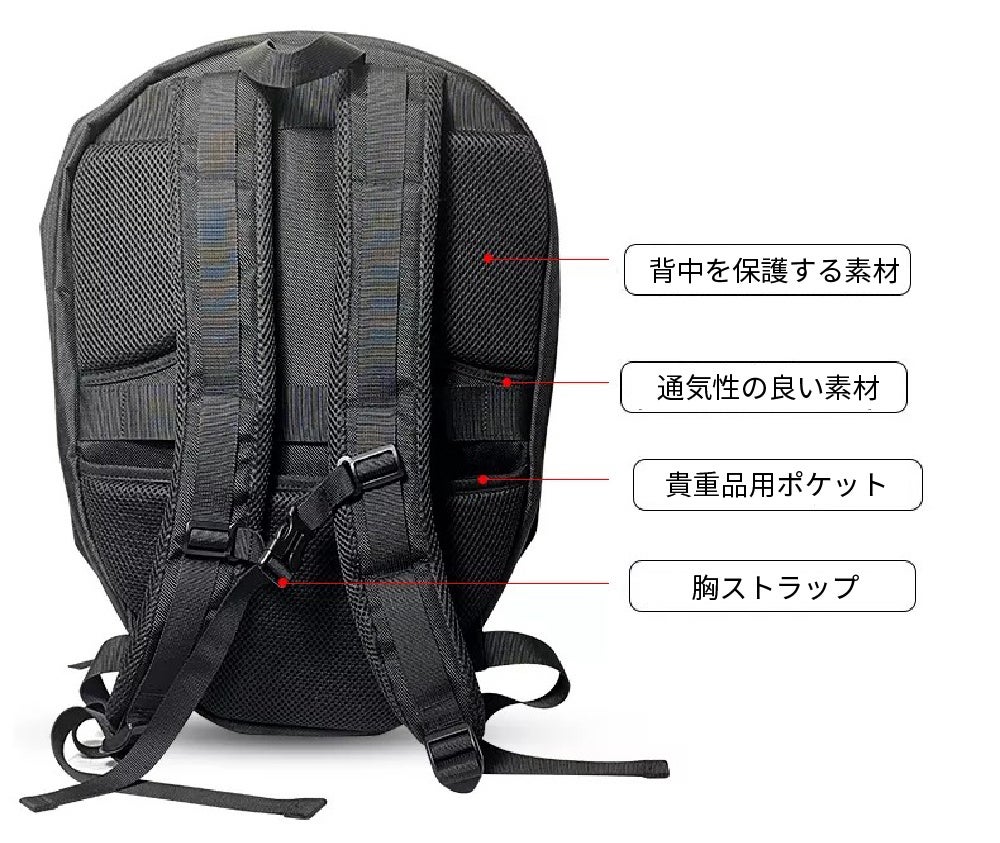 ※ 本体表面は雨に比較的強い素材ですが、バックパック本体は防水ではありません。特に内部に水を入れたり、水に浸したり、濡れている場所に放置しないでください。汚れや照明の故障原因となりますので注意してください。