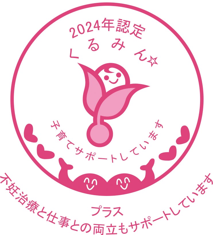 このような取り組みが評価され、子育てや、不妊治療と仕事との両立支援サポート企業として「くるみんプラス認定」を取得しました。