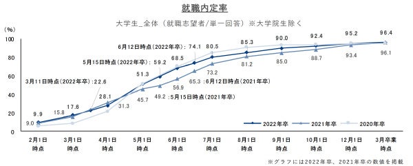 就職プロセス調査(2022年卒)「2022年3月度(卒業時点)内定状況」