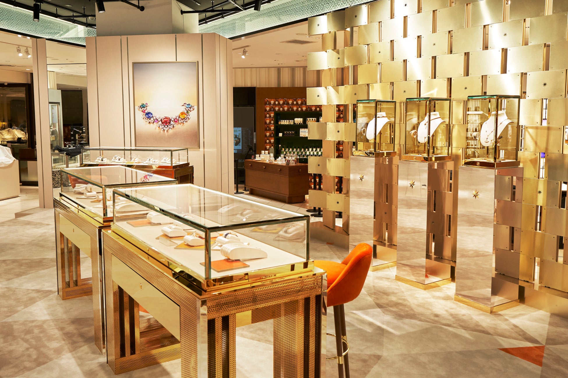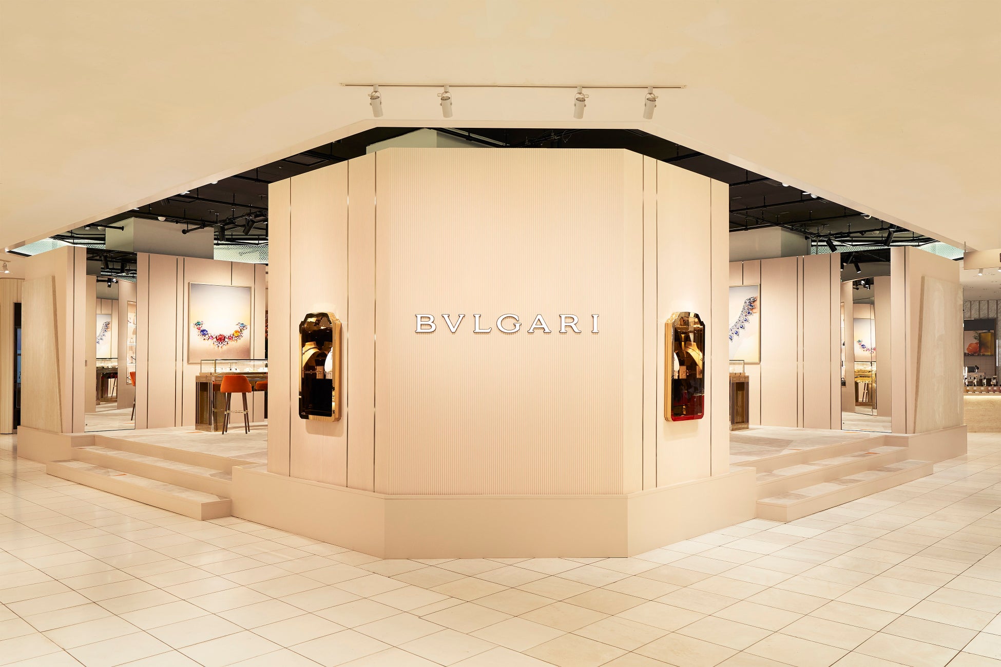 ブルガリのクリエイティビティとラグジュアリーの双方が表現されたこのポップアップストアはブルガリの本質を体現し、細部にまでエレガンスと洗練が満ちあふれた空間となっています。