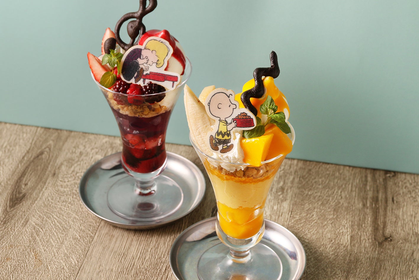 みずみずしいマンゴーやプリンと、チャーリー・ブラウンの大好きなバナナを乗せた優しい甘みのサンデー。