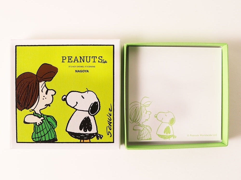 PEANUTS Cafe 名古屋限定デザイン!ペリカンズ スヌーピーとペパーミント パティがプリントされたアートボックス。
