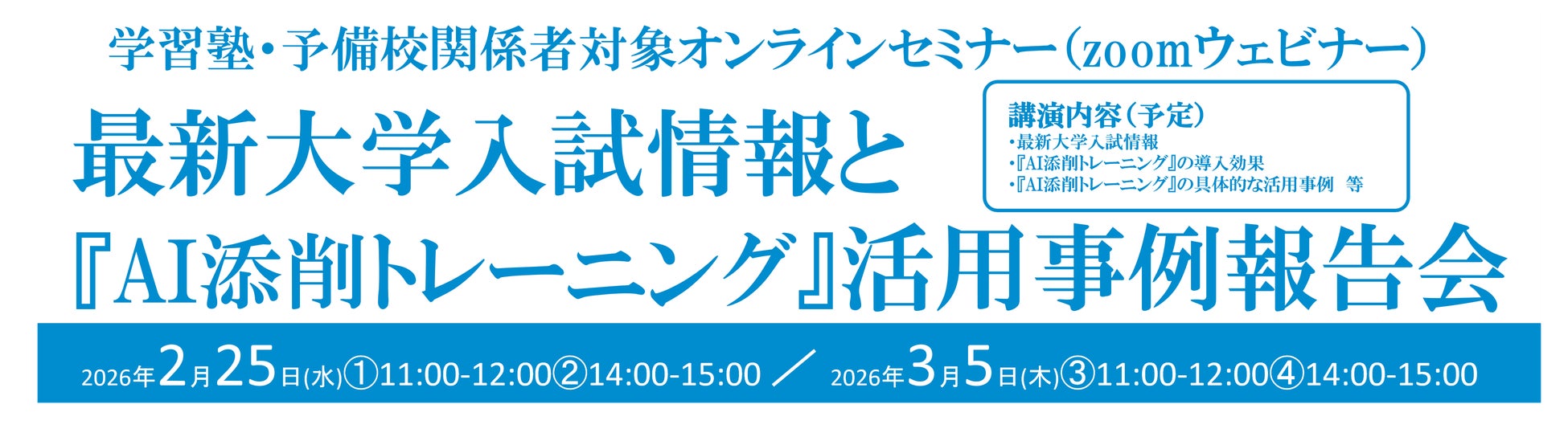 株式会社増進会ホールディングス(Z会グループ)のグループ会社で、教育機関の支援事業を行う株式会社エデュケーショナルネットワーク(本社:東京都千代田区、代表取締役社長:大久保忠志)は、学習塾・予備校関係者対象のウェビナー「最新大学入試情報と『AI添削トレーニング』活用事例報告会」を、2026年2月25日(水)、3月5日(木)に開催します。