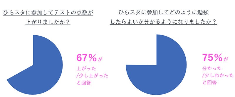 「ひらスタ」に参加した生徒のうち約7割が、登室前後では「学校でのテストの得点が上がった」「勉強のやり方が分かるようになった」と実感していることが分かりました。