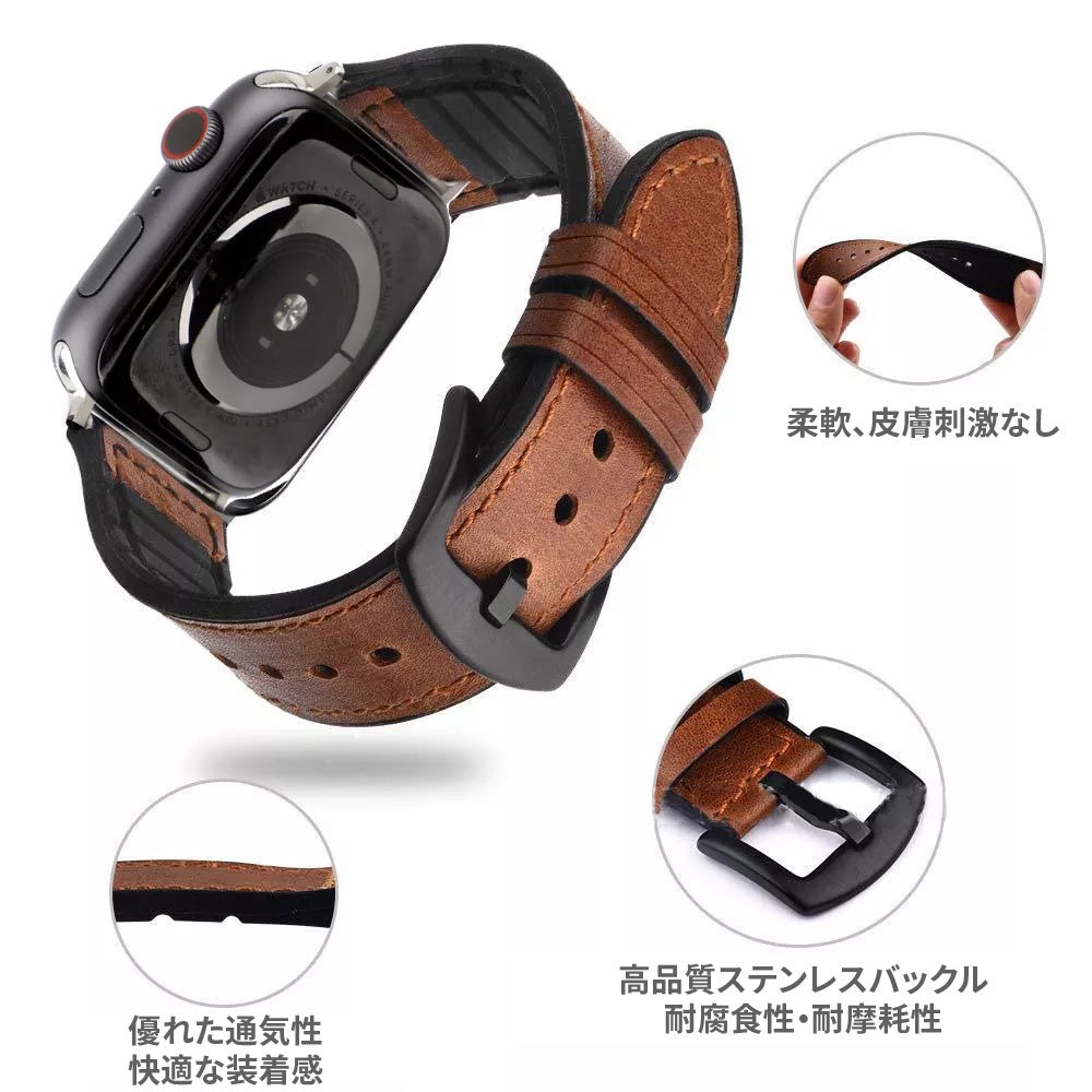 【上質な本革/アップルウォッチ間の互換性/高い耐久性/通気性】