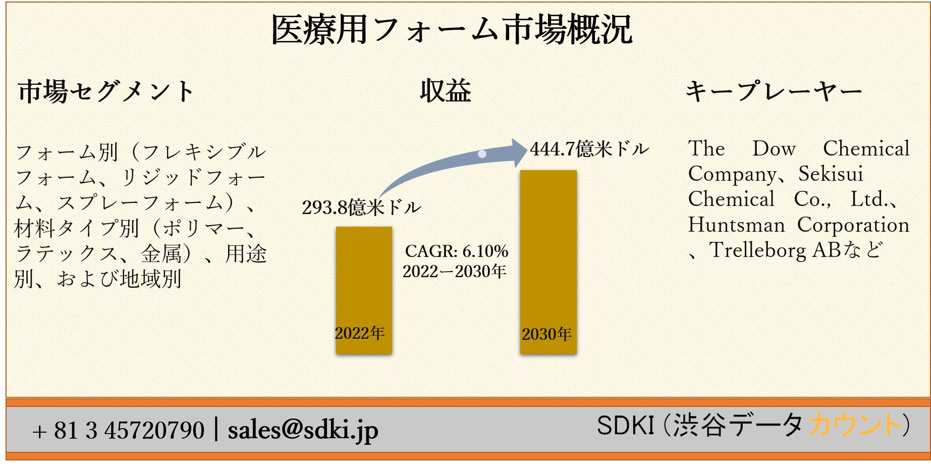 SDKI Inc.は、「世界の医療用フォーム市場ー予測2022ー2030年」新レポートを 2021年12月28日に発刊しました。この調査には、医療用フォーム市場の成長に必要な統計的および分析的アプローチが含まれています。レポートで提供される主要な産業の洞察は、市場の既存のシナリオに関する読者に市場の概要についてのより良いアイデアを提供します。さらに、レポートには、市場の成長に関連する現在および将来の市場動向に関する詳細な議論が含まれています。