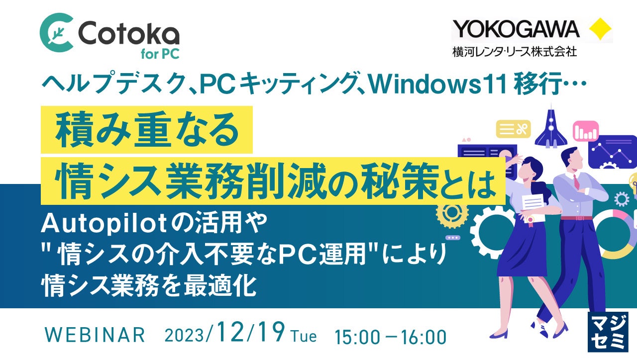 具体的な解決策として、Windows Autopilotを活用したPCキッティングの自動化、"情シスの介入不要なPC運用"を実現するCotoka for PCについて詳細に解説します。