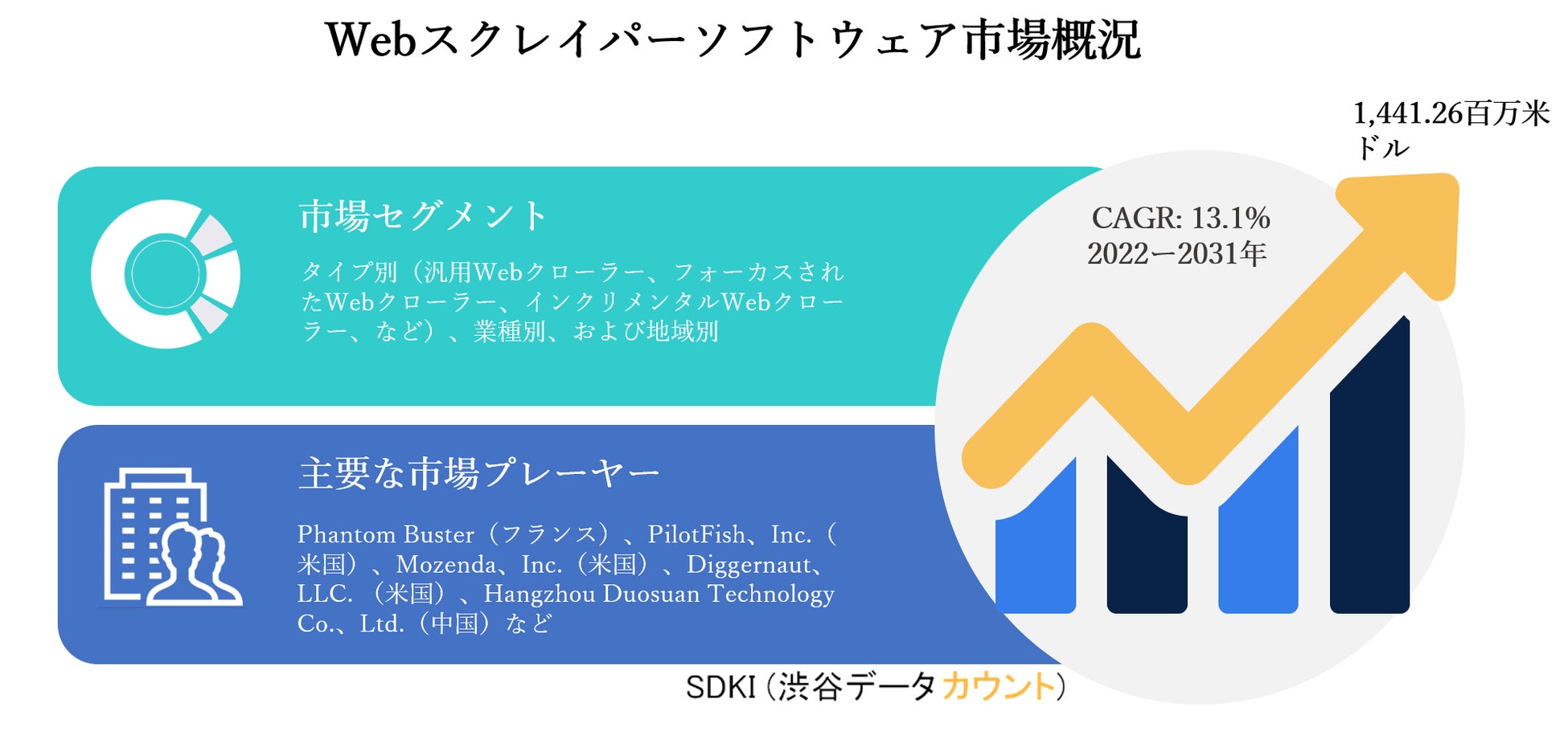 SDKI Inc.は、世界のWebスクレイパーソフトウェア市場の新レポートを2021年12月30日に発刊しました。この調査には、Webスクレイパーソフトウェア市場の成長に必要な統計的および分析的アプローチが含まれています。レポートで提供される主要な産業の洞察は、市場の既存のシナリオに関する読者に市場の概要についてのより良いアイデアを提供します。さらに、レポートには、市場の成長に関連する現在および将来の市場動向に関する詳細な議論が含まれています。