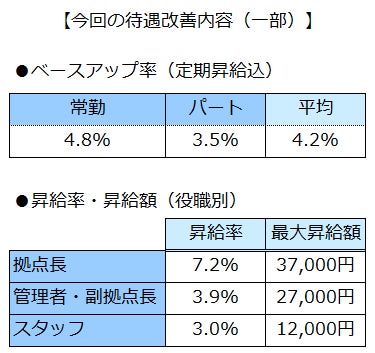 ベースアップ率は常勤が4.8%、パートが3.5%