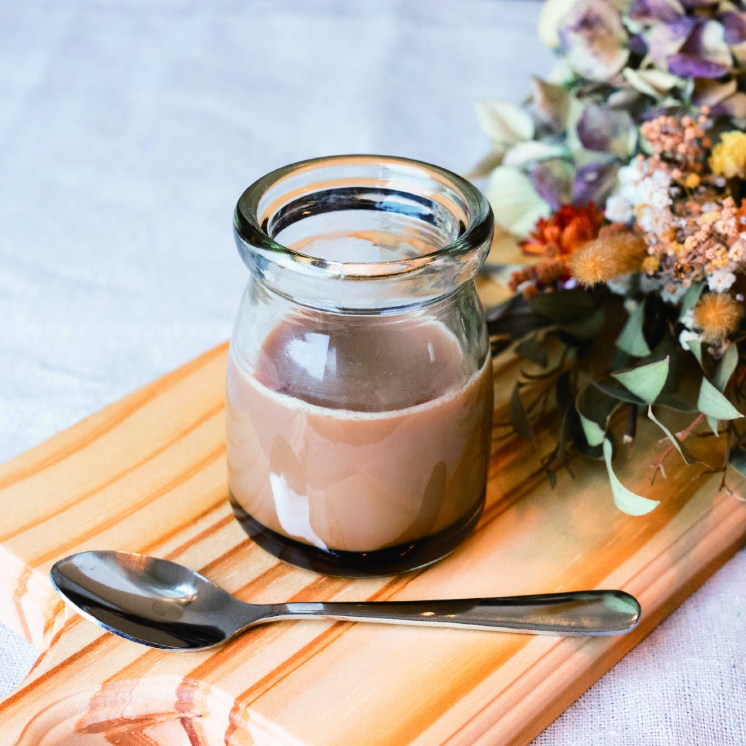 自家焙煎で極限まで深煎りにすることで豆が持つ本来の甘さと旨さを引き出しています。一般的なプリンの半分以下の量のお砂糖でも、甘く落ち着いた味わいが楽しめる、女性に嬉しいスイーツです。