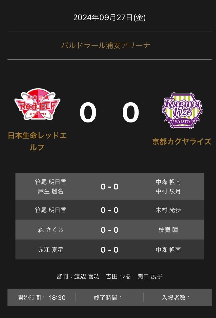 ノジマTリーグ 2024-2025シーズン 公式戦 9月27日開催 日本生命レッドエルフ vs 京都カグヤライズ オーダー発表