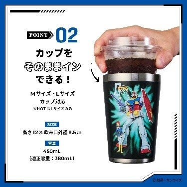 冷たいドリンクも、温かいドリンクも飲みごろ温度を長時間キープし、コンビニのカップコーヒーをそのまま入れることもできる便利すぎるタンブラーに、ガンプラの美麗パッケージアートを大胆にプリントしました。5種を並べると壮観です!