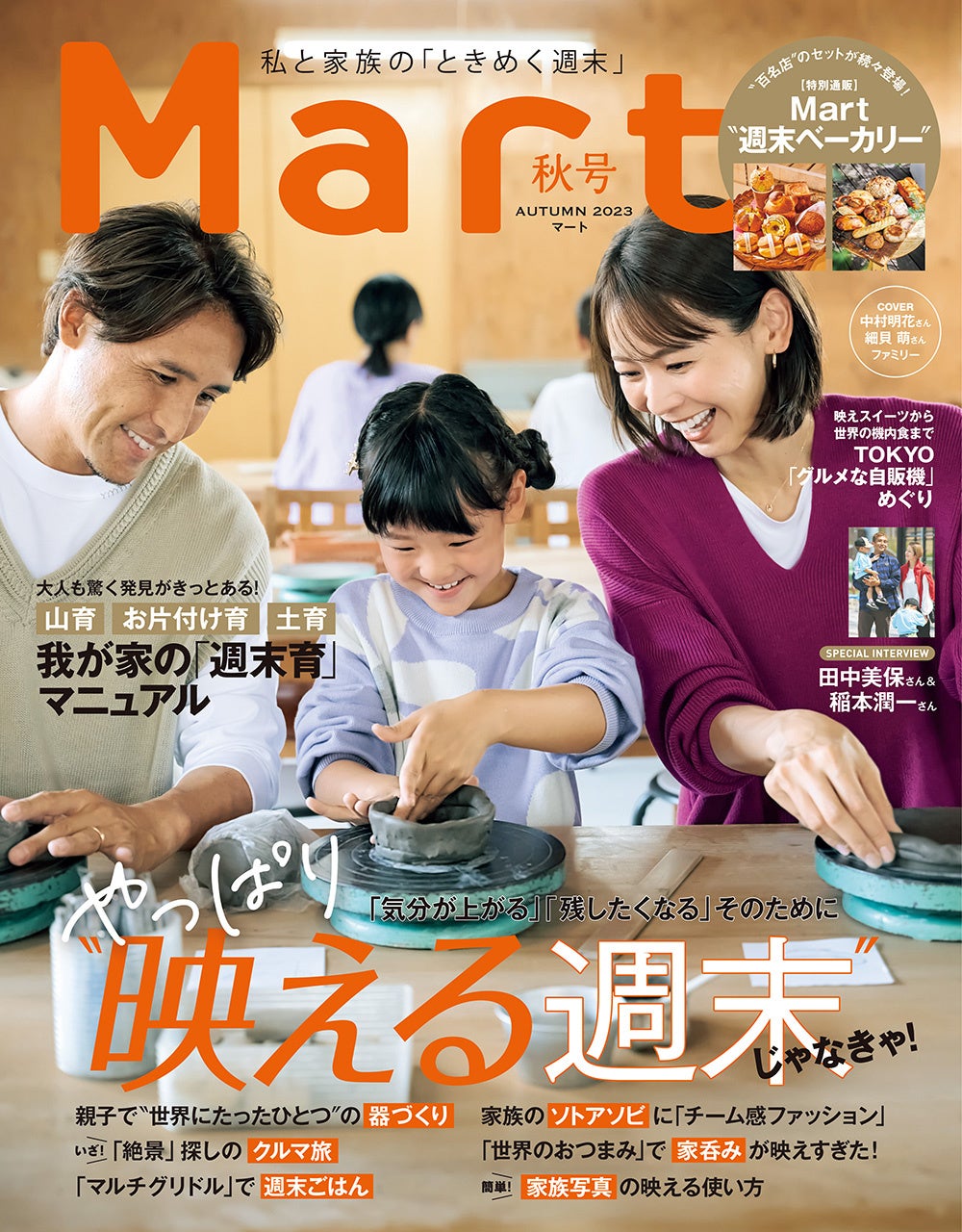 文字通り、絶景に出合えるお出かけ先や、家族の一体感が上がるファッションのコツ、そして家呑みのエモいメニューまでを、54ページにわたって大特集しています。子どもの財産になる「週末育」や、百名店が続々出店の「Mart"週末ベーカリー"」などその他の企画でも、週末をもっと楽しむためのアイデアが満載です!