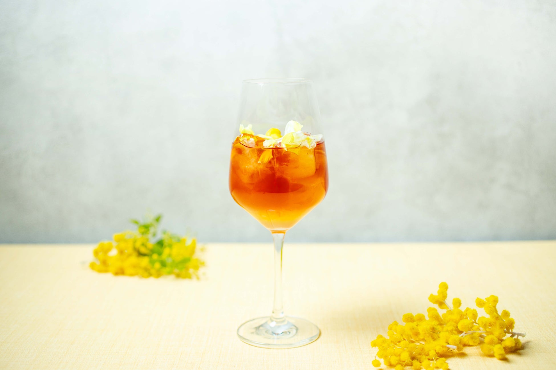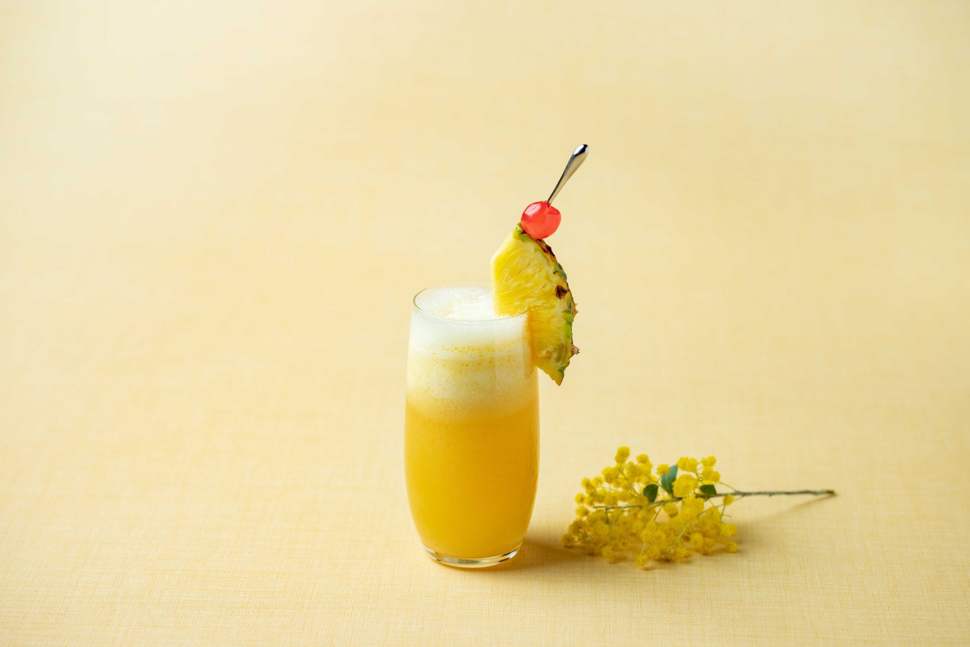 国際女性デーにちなんだ黄色いカクテル。パッションフルーツテイストのローアルコールカクテルは、どの時間帯でもお楽しみいただけます。