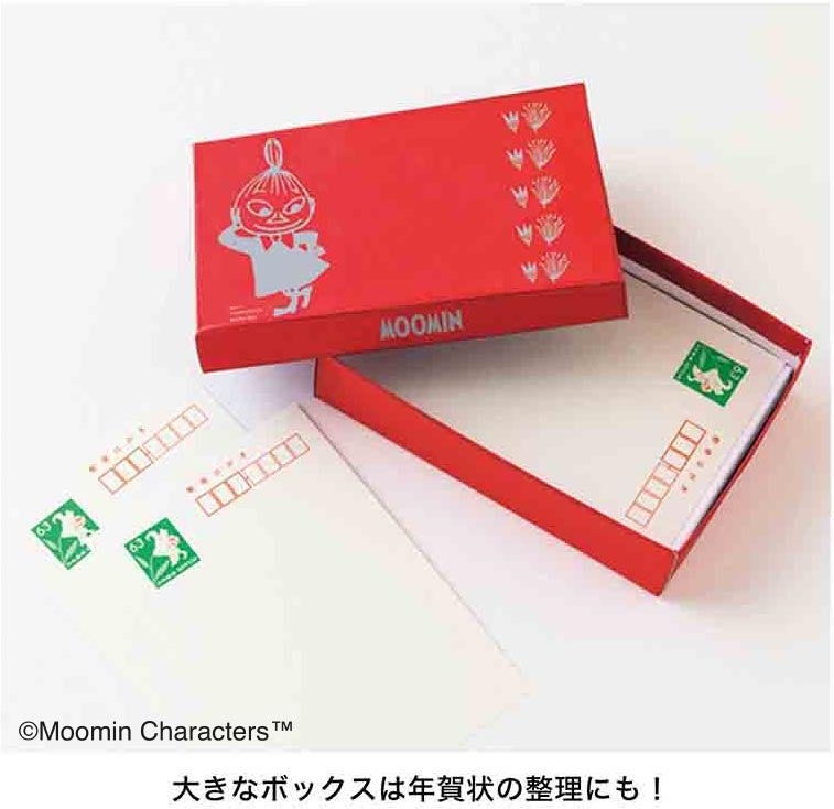 整理収納にも最適なハガキサイズとカードサイズの2種のボックスに、新年の挨拶をするときにも重宝する一筆箋と3枚のポチ袋、そしてシール。すべてにリトルミイがデザインされた、おめでたさ満点のセットです。