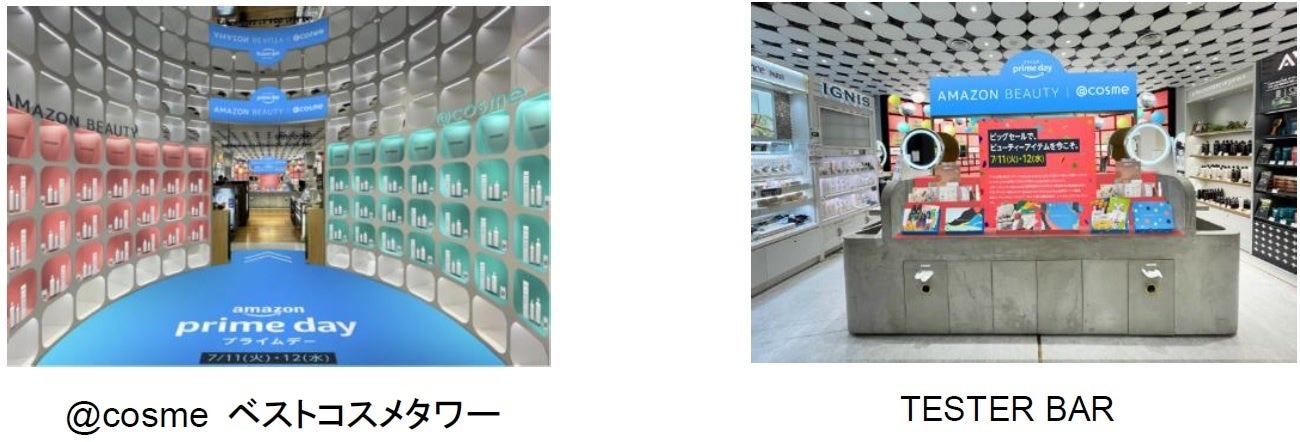 原宿の「@cosme TOKYO」では、7月5日(水)から7月12日(水)までイベントを開催し、店内では「Amazon Beauty」の特設ページにて紹介している全商品を「@cosme ベストコスメタワー」エリアなどで展示、また「TESTER BAR」エリアではお客様に商品をお試しいただけます。また、厳選されたアイテムのサンプルセットを限定1万人様に配布し、プライムデー前にご自宅でお試しいただける機会を提供いたします。これらの商品は、プライムデー期間中にAmazonにて特別価格で購入いただけます。