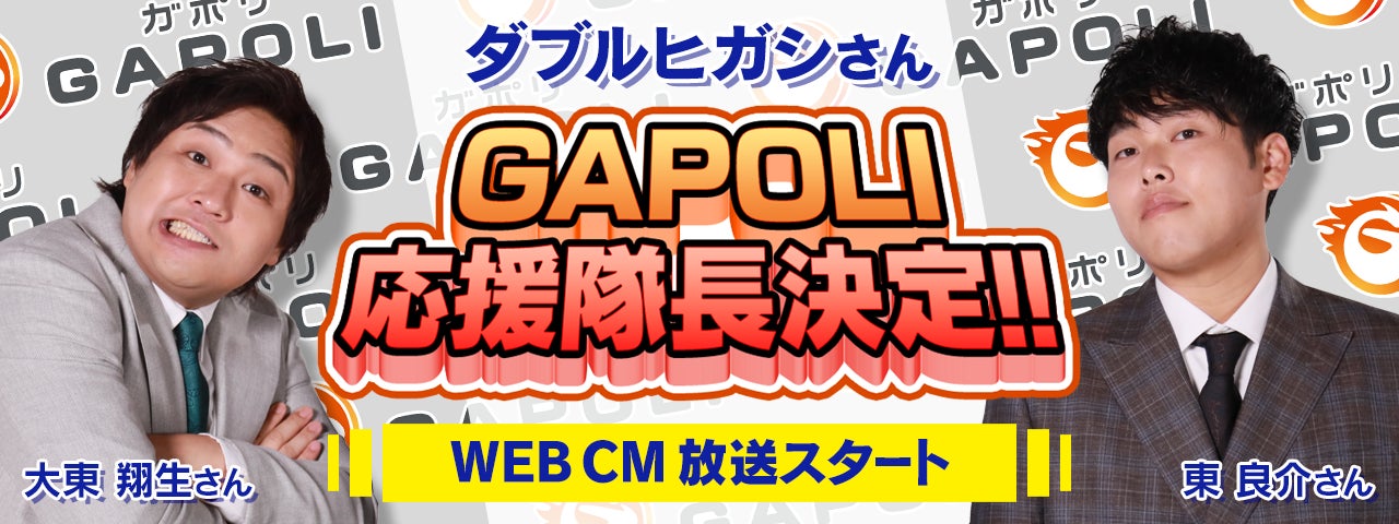 またGAPOLI1.5周年を記念してダブルヒガシ出演のWEBCMを配信いたします。
