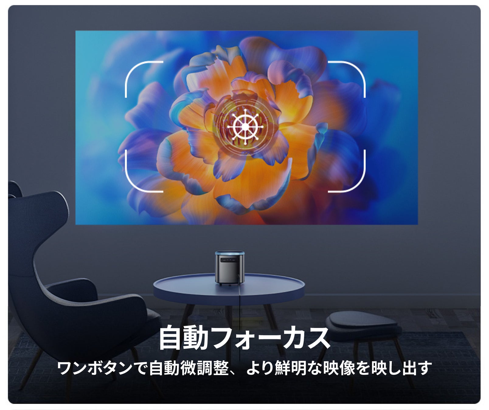 【明るさ最大210ANSIルーメン/スマホと簡単接続/高速WiFi/幅広い投影サイズ調節可能】