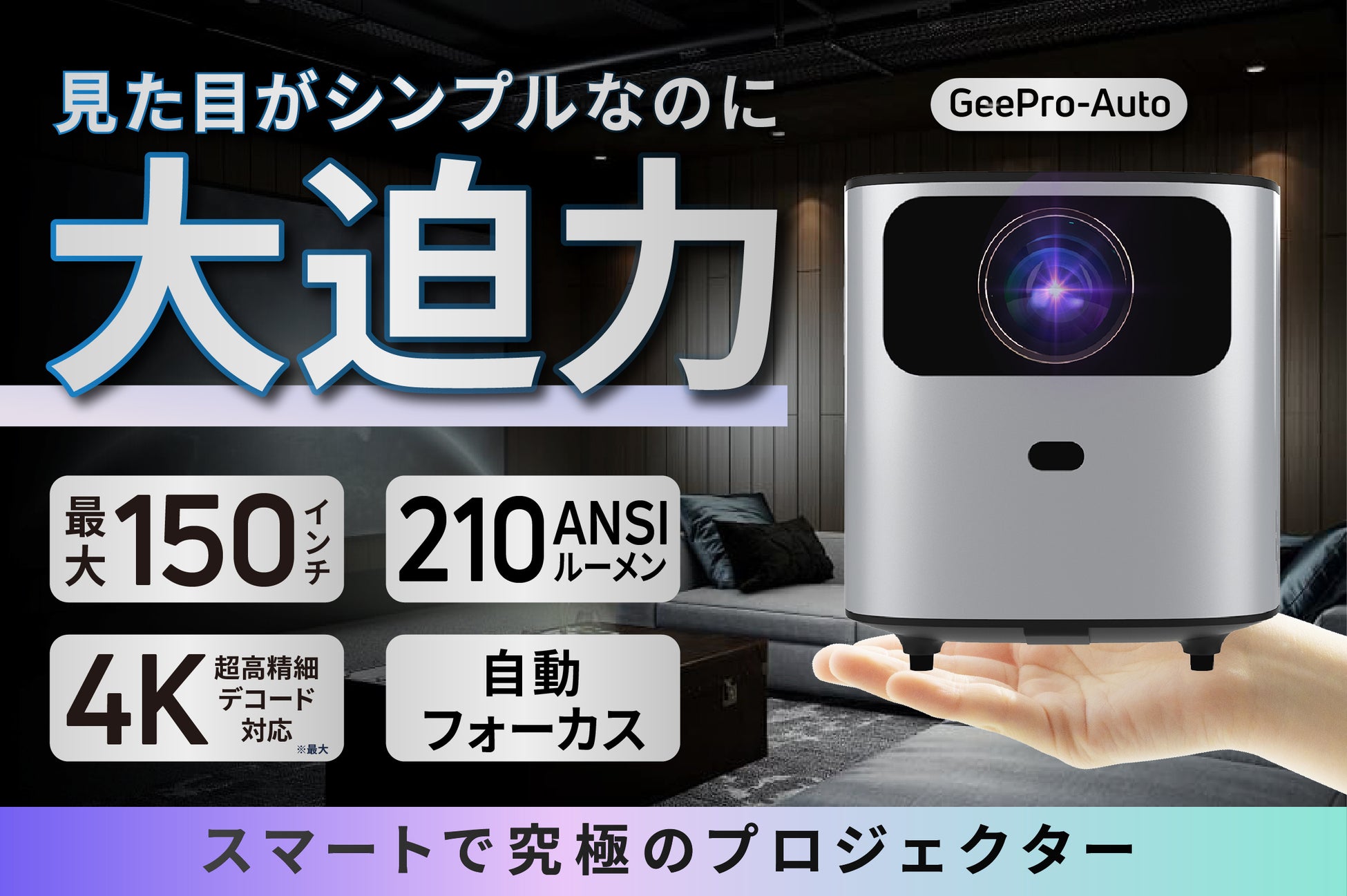 【日本初上陸記念!20セット限定38%オフ】最大150インチ投影で大迫力!フォーカス機能搭載で最大4Kデコードの美しい映像が楽しめるプロジェクター「GeePro Auto」クラウドファンディング開始