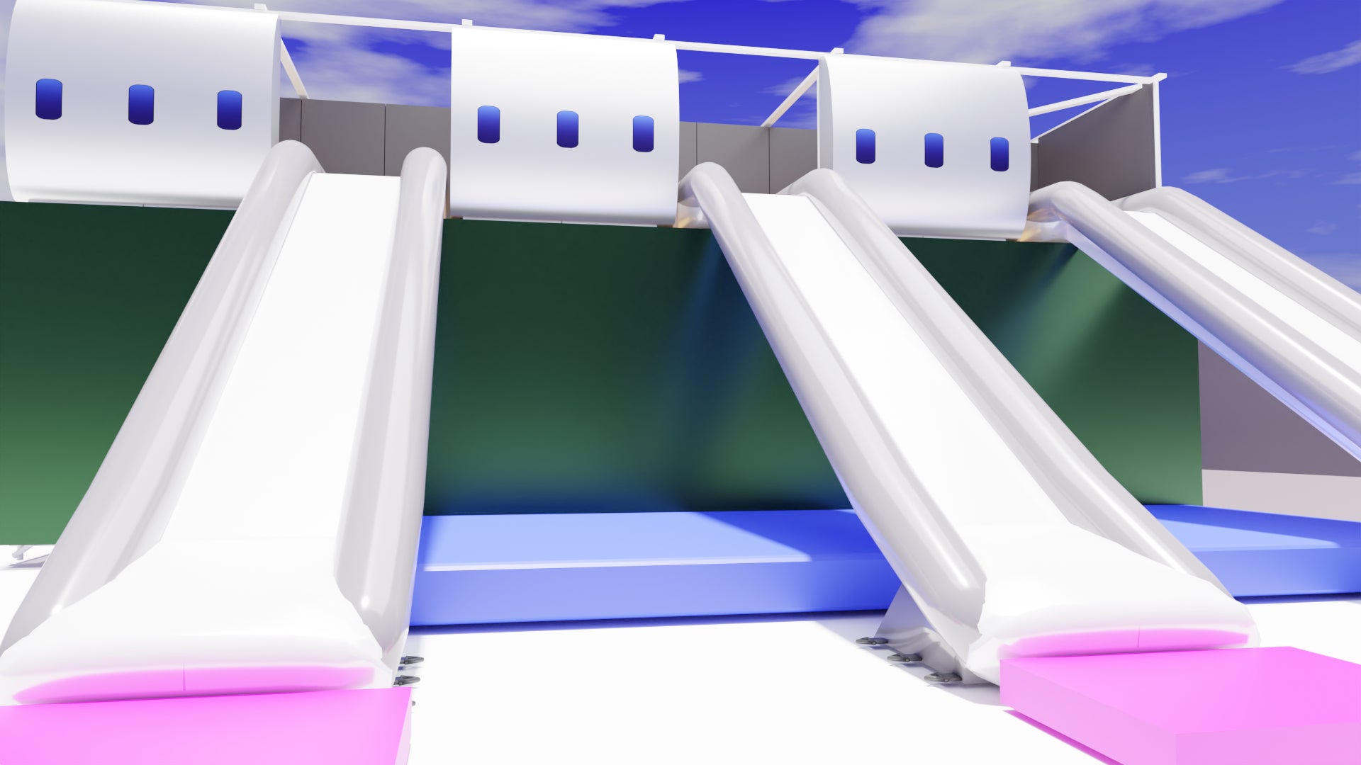 不時着した飛行機から緊急脱出シューターを使って安全に脱出しよう!