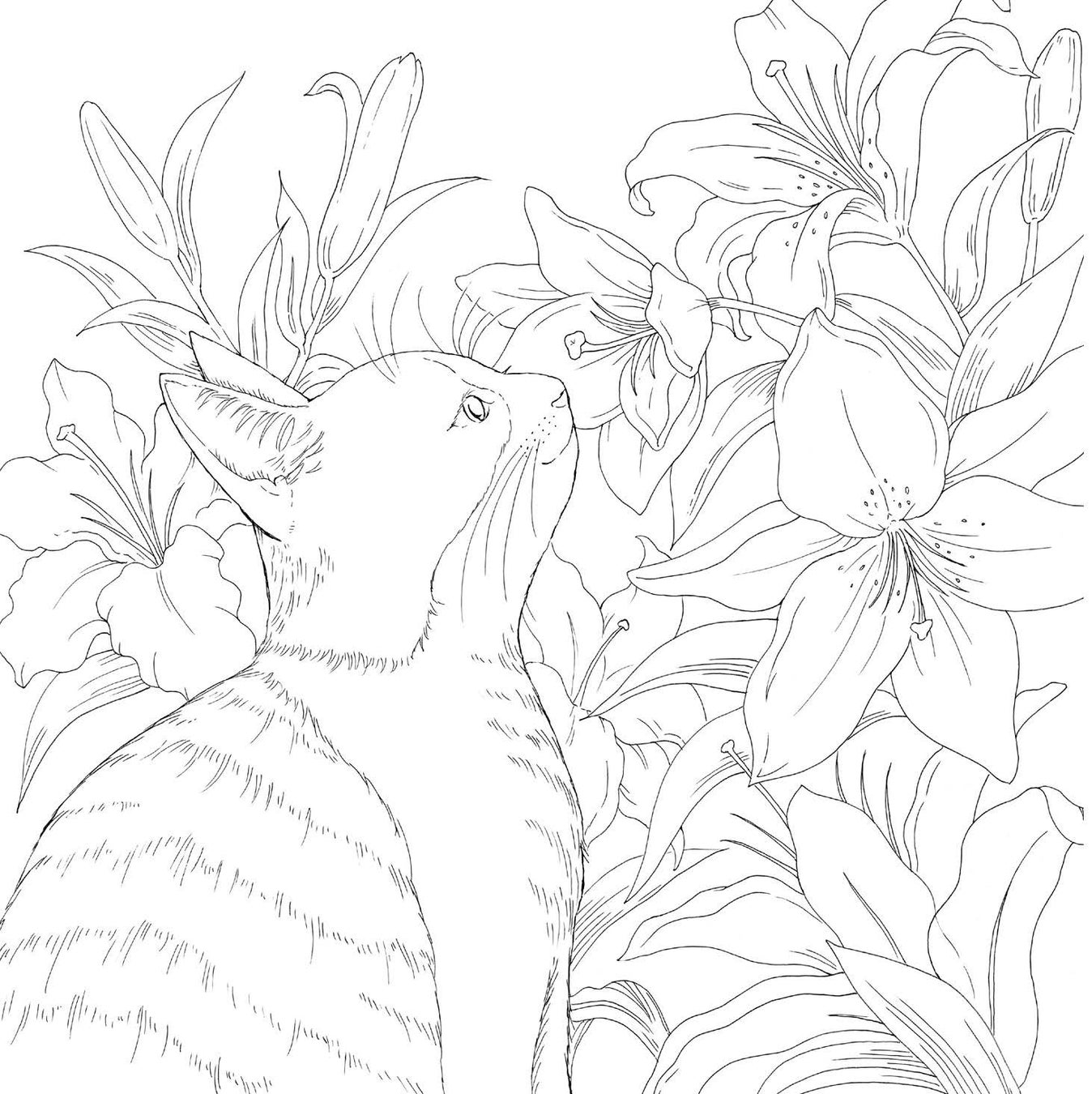 愛猫家は悶絶必至! カワイイ猫ちゃんと素敵な花が描かれた癒しのぬり絵ブックが発売!