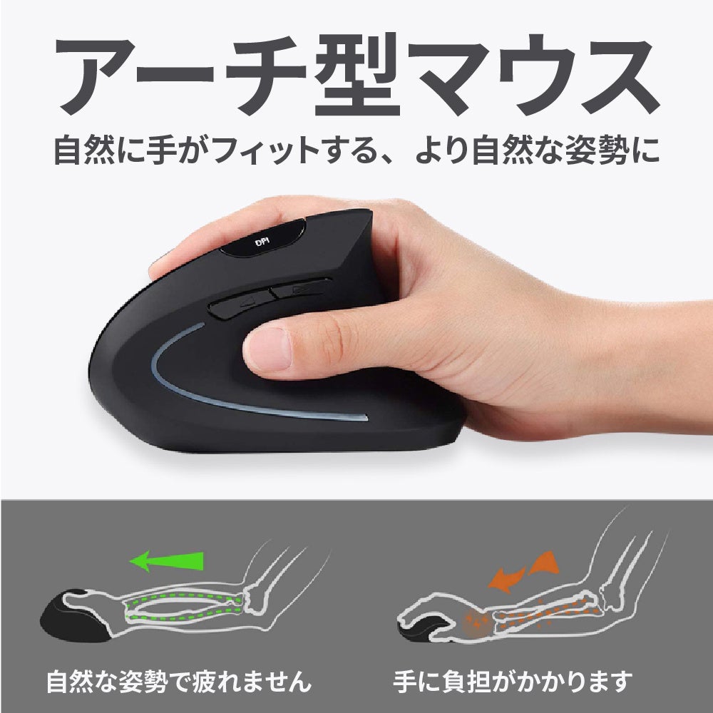 手首の負担を減らすパームレスト/手首を捻らず使えるマウス/最大2000DPI/2.4GHzワイヤレス/Windows/電池交換式