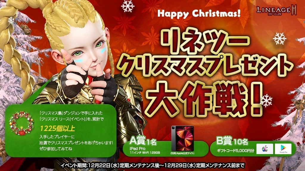 https://lineage2m.ncsoft.jp/board/notice/view?articleId=61c22f448fcd390001675277●「クリスマスに輝く血盟の祝福」開催