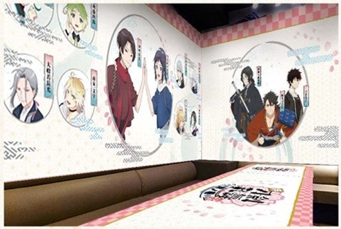 壁面やドア、テーブルを「特『刀剣乱舞-花丸-』〜雪月華〜」一色に彩ります。