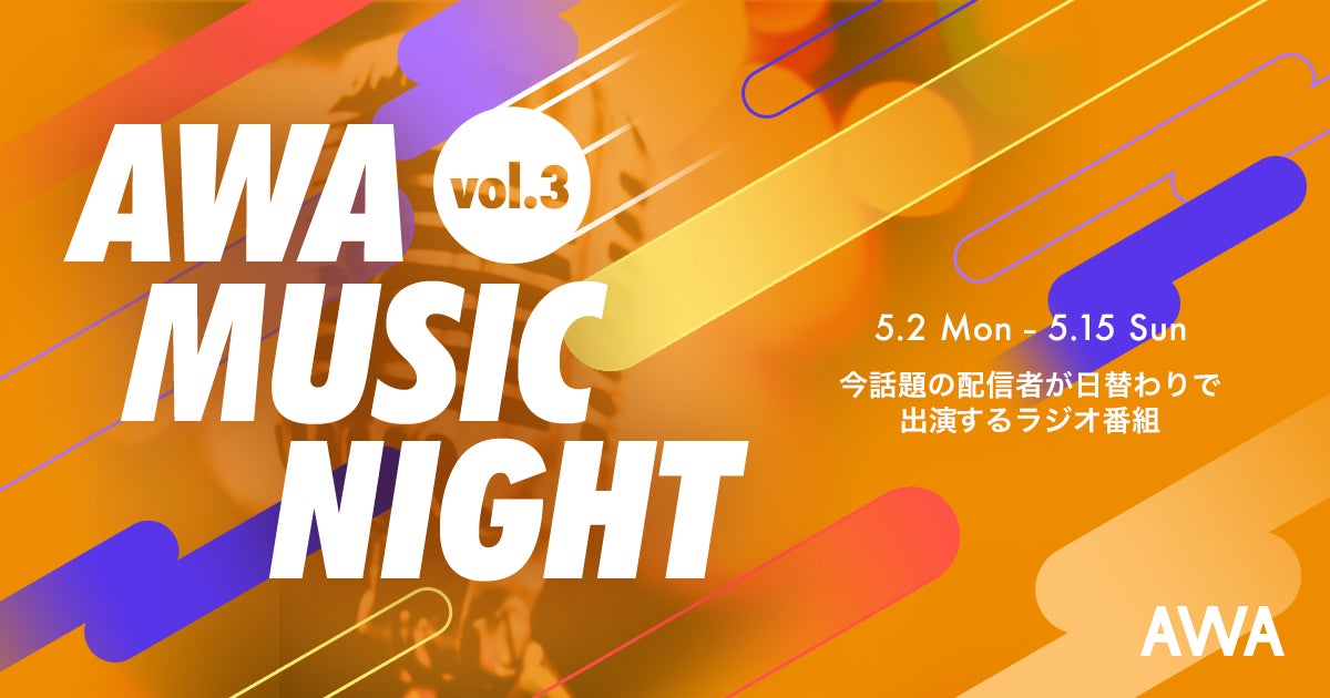 AWA株式会社(本社:東京都港区、代表取締役CEO:冨樫晃己)が運営する、サブスクリプション型(定額制)音楽ストリーミングサービス「AWA(アワ)」は、5月2日より、話題の配信者や歌い手7名で「AWA Music Night」第3弾を開催いたします。また、7名がインターネットTV「ABEMA」で放映されるAWAのCM出演をかけたキャンペーンも同時スタート。
