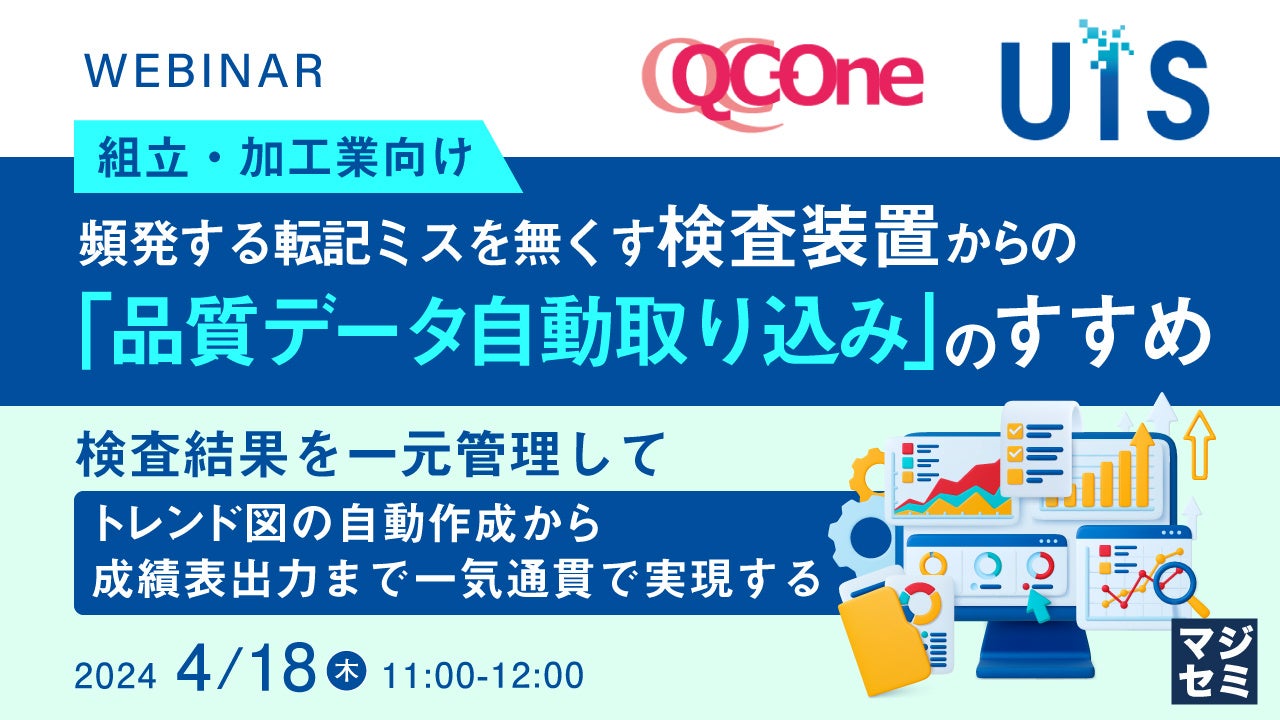 本セミナーでは、品質管理システム『QC-One』を通して、従来の紙やExcelによる品質検査データの管理を効率化する具体的な手法と、その活用事例を紹介します。