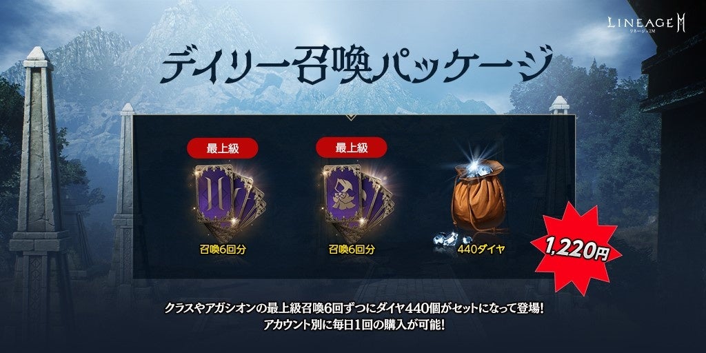 1日1回購入できる「デイリー召喚パッケージ」が登場しました。