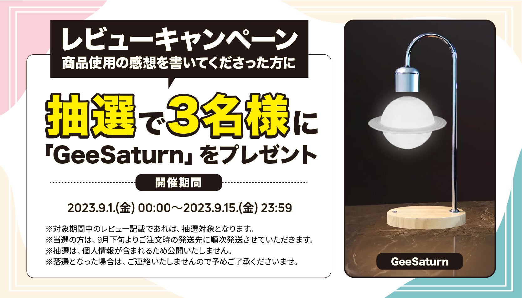 対象期間中に商品使用の感想を書いてくださった方に抽選で3名様に「GeeSaturn」をプレゼント!