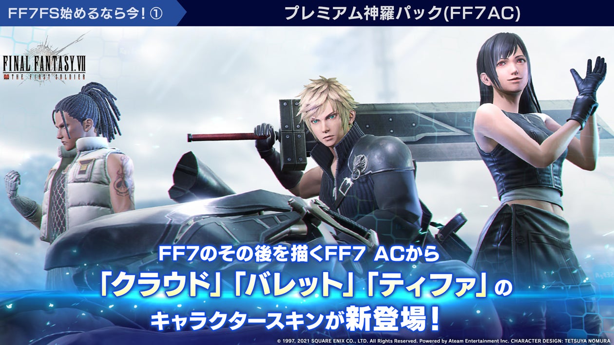 株式会社エイチームのグループ会社である株式会社エイチームエンターテインメント(本社:愛知県名古屋市、代表取締役社長:中内 之公)と株式会社スクウェア・エニックス(本社:東京都新宿区、代表取締役社長:松田 洋祐)が共同開発したスマートデバイス向けバトルロイヤルアクションゲーム『FINAL FANTASY VII THE FIRST SOLDIER(ファイナルファンタジーVII ザ ファーストソルジャー)』にて、2021年12月28日(火)より、新たなキャラクタースキン「クラウド(FF7 AC)」「ティファ(FF7 AC)」「バレット(FF7 AC)」が登場しました。また、200万ダウンロード突破を記念して新スキンが出現するパック(ガチャ)実行に使用可能なチケットをプレゼントするログインボーナスやチャレンジを開催します。さらに、年末年始期間中はゲーム内通貨「神羅トークン」の還元キャンペーンを開催します。加えて、本作は2021年12月28日(火)より、対応言語に「タイ語」「スペイン語(ラテンアメリカ)」を追加しました。