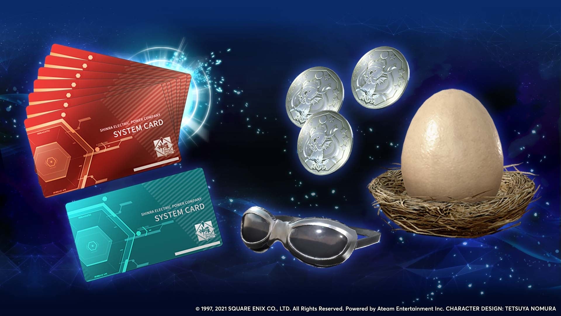 「プレミアム神羅パックチケット(FF7 AC)」の他、チョコボ牧場で孵化させることができる「チョコボの卵」やギルなどを受け取ることができます。期間中7日間ログインすると、スキン「クラウドサングラス(FF7 AC)」を受け取ることができます。
