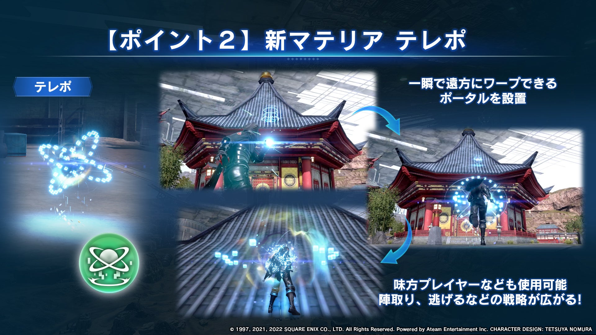 訓練フィールドで拾うことができるマテリア(魔法)に「テレポ」が追加に。
