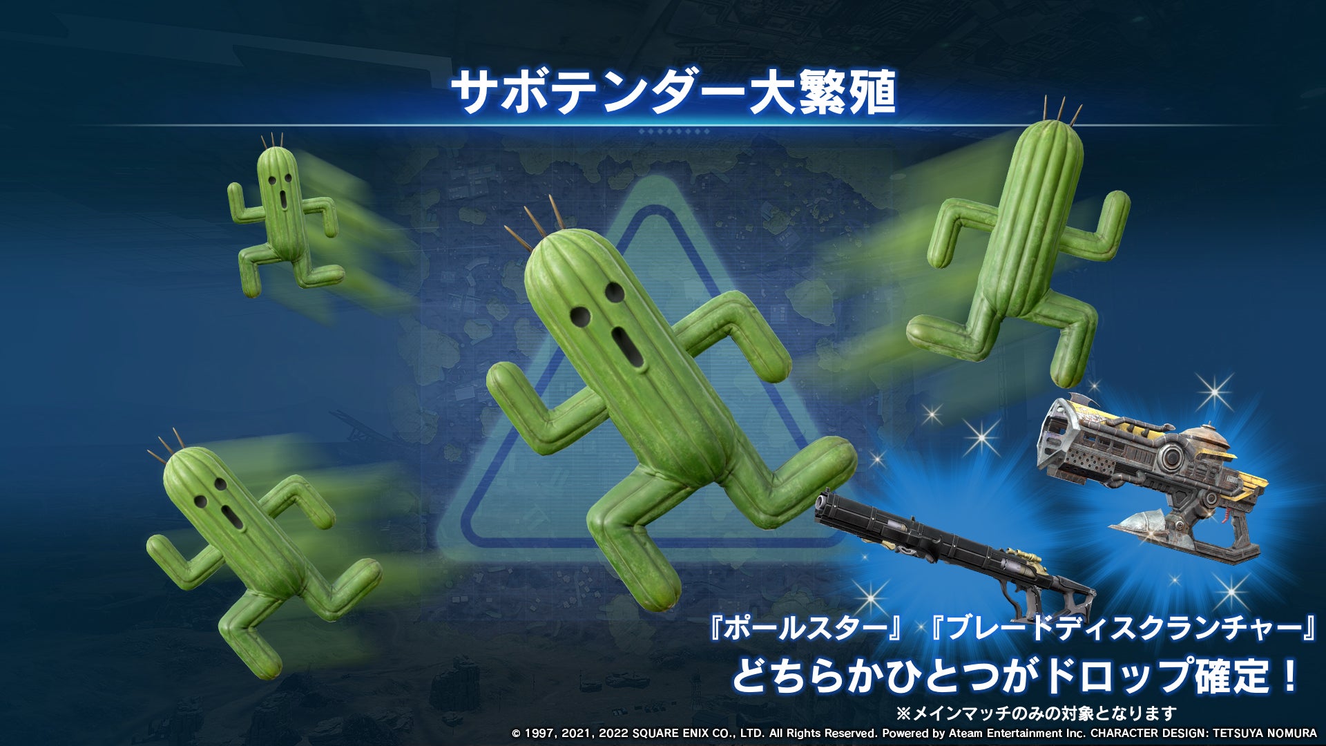 期間中、メインマッチの訓練フィールドに出没するモンスター「サボテンダー」の出現率がアップします。モンスターを討伐すると、コレクションスキンの獲得に必要な「データピース」や、武器『ポールスター』または『ブレードディスクランチャー』が獲得できます。