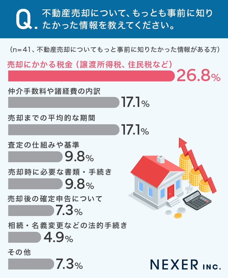 26.8%と、4人に1人以上が「売却にかかる税金(譲渡所得税、住民税など)」と回答しています。